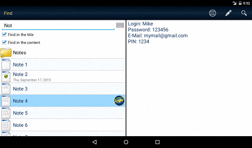 MyTreeNotes是一款免费的记事工具,它拥有强大的功能设计,让用户能够随时输入各种事项提醒,自动备份到SD卡,拥有自动提醒和密码保护等功能,用户可以随意输入各种重要的信息,非常的安全!