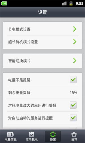省电精灵是一款功能强大的安卓手机省电工具,提供了日常、节电、超长待机三种省电模式,以应对不同场合。软件还拥有电量监控、耗电排行、后台清理等实用功能,当有高耗电软件启动时还会自动提示,帮助你便捷高效地管理手机电量,是好用的省电助手。