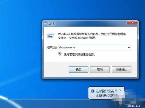 如果设置了特定时间关闭系统,弹出提醒框后,你有一分钟的时间,来运行这个命令。在弹出提醒窗口前运行无效。