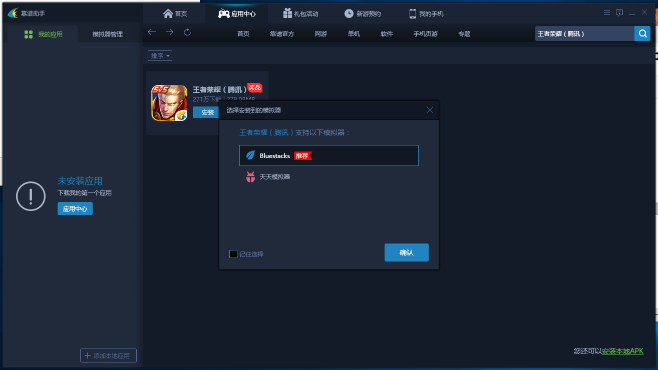这里小编以靠谱助手安装bluestacks为例,首先安装靠谱助手,然后安装bluestacks: