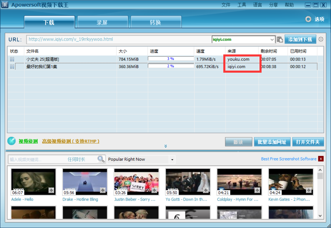 打开我们想要下载的视频,复制网址,黏贴进去就可以快速的进行下载!以优酷和爱奇艺的两个视频为例: