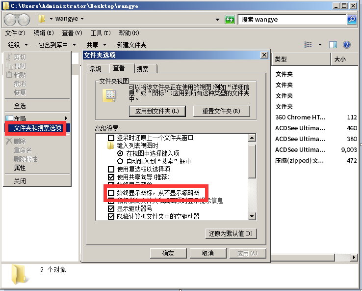 1.首先确定我们的视图模式是略缩图模式,只有中等图标以上才能正确显示略缩图: