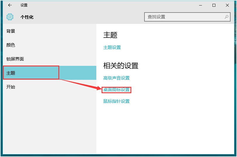 2、在个性化设置窗口选择“主题”---“桌面图标设置”: