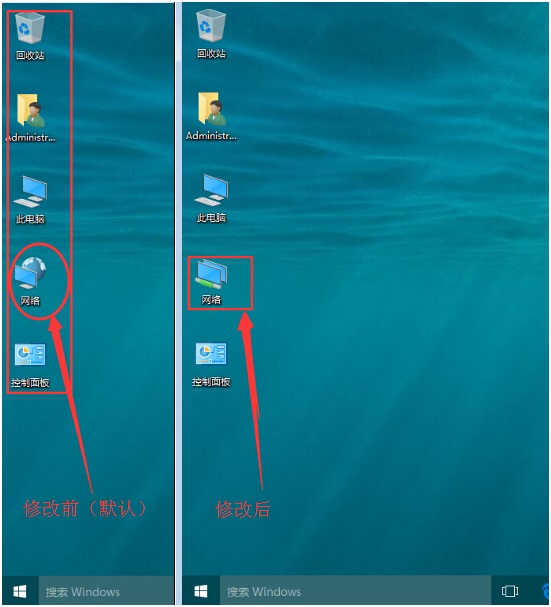 修改了桌面“网络”的图标,下面对比看一下: