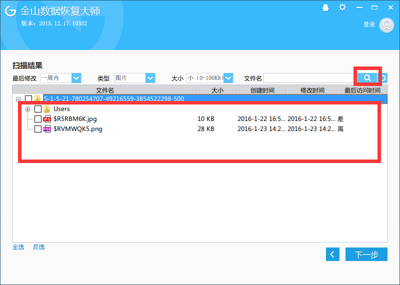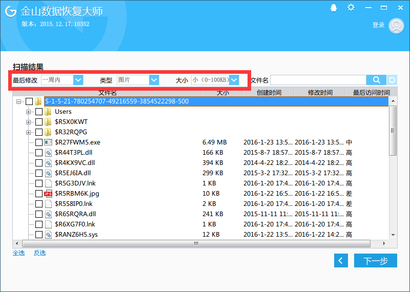 选择可恢复性高的文件,选择下一步: