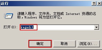 1、 点击“开始”打开“运行”,或者按“WIN+R”键调出运行窗口,然后输入“regedit”命令,点击“确定”按钮,打开注册表编辑器。如下图所示: