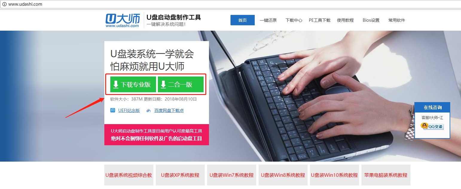 1、请在U大师官网下载U大师U盘启动盘制作工具;(点击图片即可跳至官网)