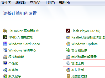 2 把控制面板调为小图标展示模式,并打开管理工具如下图所示