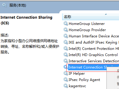 4 在打开的服务窗口中可以输入inter前面的字段,更快速的选择到internet connection sharing(ics)服务,单击右键选择“属性