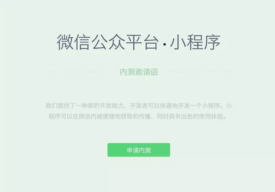 A:目前,小程序仍然处于内测阶段。全面开放申请后,主体类型为个人、企业、政府、媒体或其他组织的开发者,均可申请注册小程序。