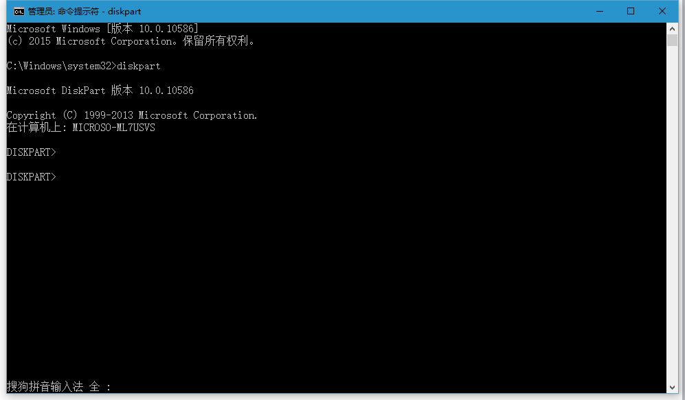 输入命令 diskpart 回车;