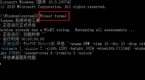 2、打开命令提示符后,我们输入:Winsat formal,然后回车;