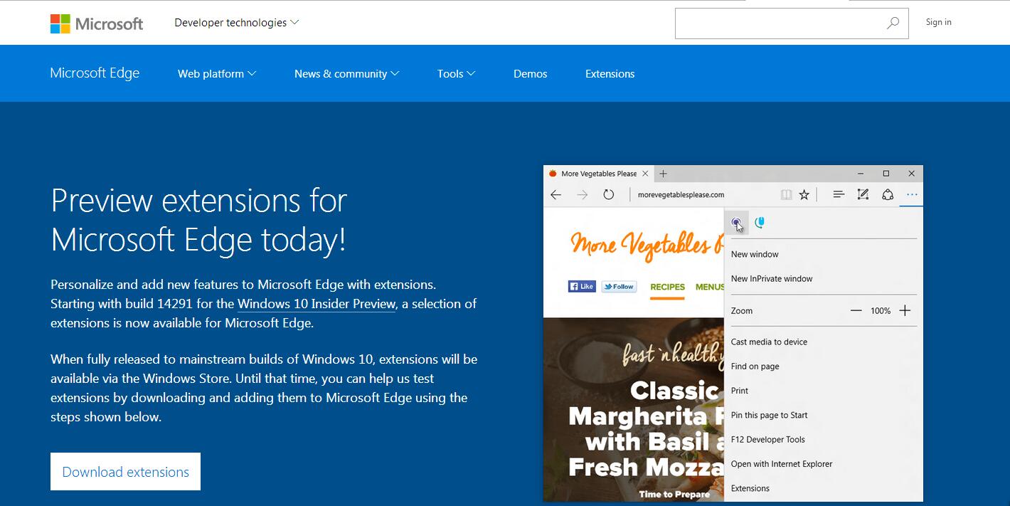 2018-06-22 16:26:29微软build2016开发者盛会于今日(3月30日)拉开帷幕,那么Edge浏览器扩展无疑将会是本次大会的亮点之一,尤其是对于Web开发人员来说,将迎来一个全新的浏览器扩展平台。赶在Build2016之前,微软官方Win10 Edge浏览器扩展开发者官网已提前上线。在开发者官网中,微软提供了Edge浏览器扩展平台介绍以及开发文档。