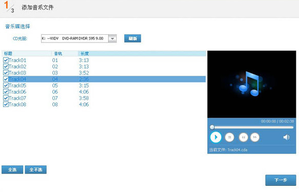 使用光盘刻录大师将CD中的歌曲提取并转换成WMA音频文件