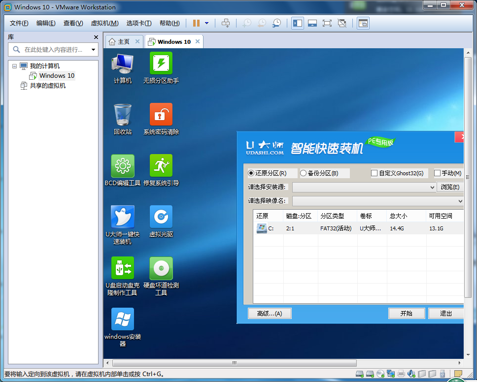 完成之后,按f10保存重启,直接进入u盘启动,可以跟pe一样操作装系统,如果不会可以到u大师主站查看!