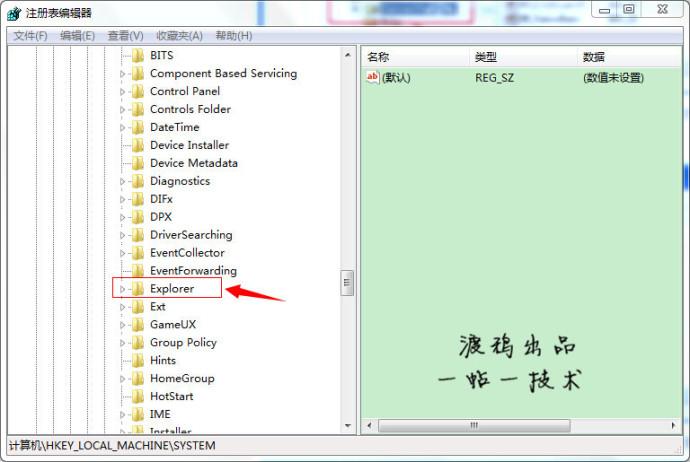 在展开的文件夹中找到“Explorer“点击红色框内箭头所示的文件夹前的+按扭