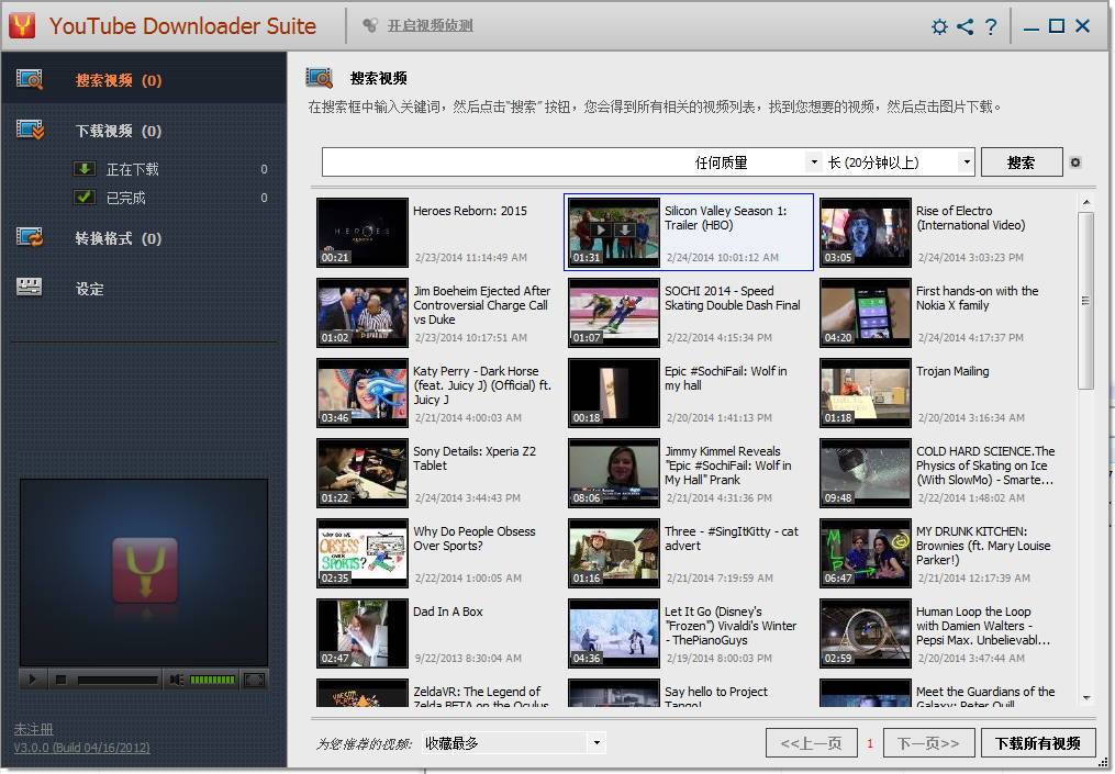Bigasoft Video Downloader Pro(youtue视频下载器)是国外一款专门用于搜索下载youtue里面的视频资源的下载工具,youtue是国外非常有名的视频播放软件,该平台有大量的视频资源,使用这款软件就能帮您轻松下载这些视频资源了。