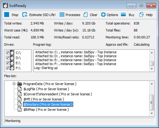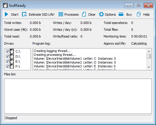 SsdReady(固态硬盘寿命检测)是一款专业的、功能实用的硬盘检测工具,能够帮助用户检测SSD固态硬盘的寿命,只需要用过一天的硬盘使用量就能够智能准确的推算出硬盘的实用年限,方便快捷,欢迎下载体验。