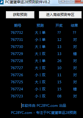 PC蛋蛋幸运28预测软件是一款非常好用的预测软件,能够帮助你尽可能准确的进行号码预测,是PC蛋蛋幸运28玩家必不可缺的辅助软件。软件体积小巧,下载十分快速,而且软件界面十分简洁直观,易于使用。
