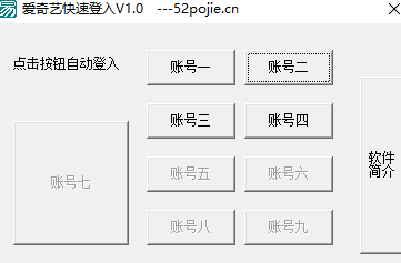 爱奇艺快速登入是一款简单又实用的爱奇艺账号登录工具,软件自带爱奇艺会员,拥有四个登录按钮,也意味着你可以免费获取四个会员账号。操作简单,只需点击登录,就可以直接进入爱奇艺网页版,而且免费自动登录会员账号。