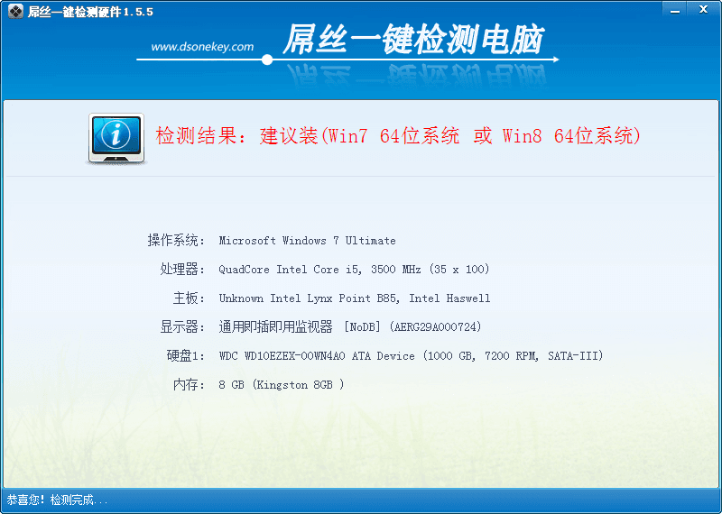 屌丝一键检测硬件是一款绿色安全的硬件检测软件,不仅可以帮你检测电脑的硬件信息,还可以根据你的硬件给出合理的系统安装建议,非常不错。