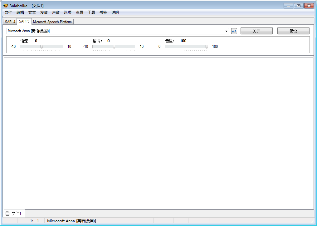 Balabolka是一款文本转语音的软件,它支持计算机系统上安装的所有语音,可以查看不同格式的文本,还可以改变语音的参数,包括语度和语调,此外它还可以在USB设备上运行。
