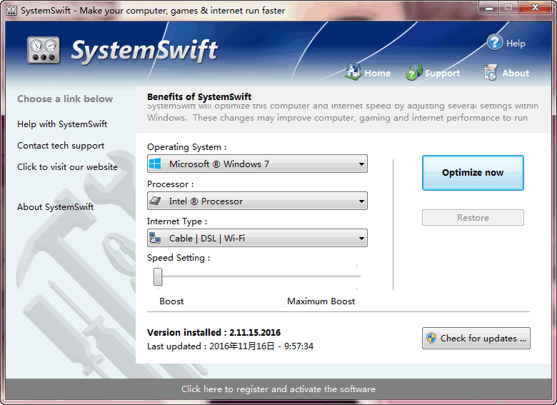 SystemSwift是一款电脑速度优化软件,它界面简洁大方。它的多功能性可以很好的提升电脑速度,网速等。它的兼容性强,支持多种操作系统。此外它还能解决电脑速度的一些常见的问题,是一款能让电脑终身享用高效运转速度的软件。