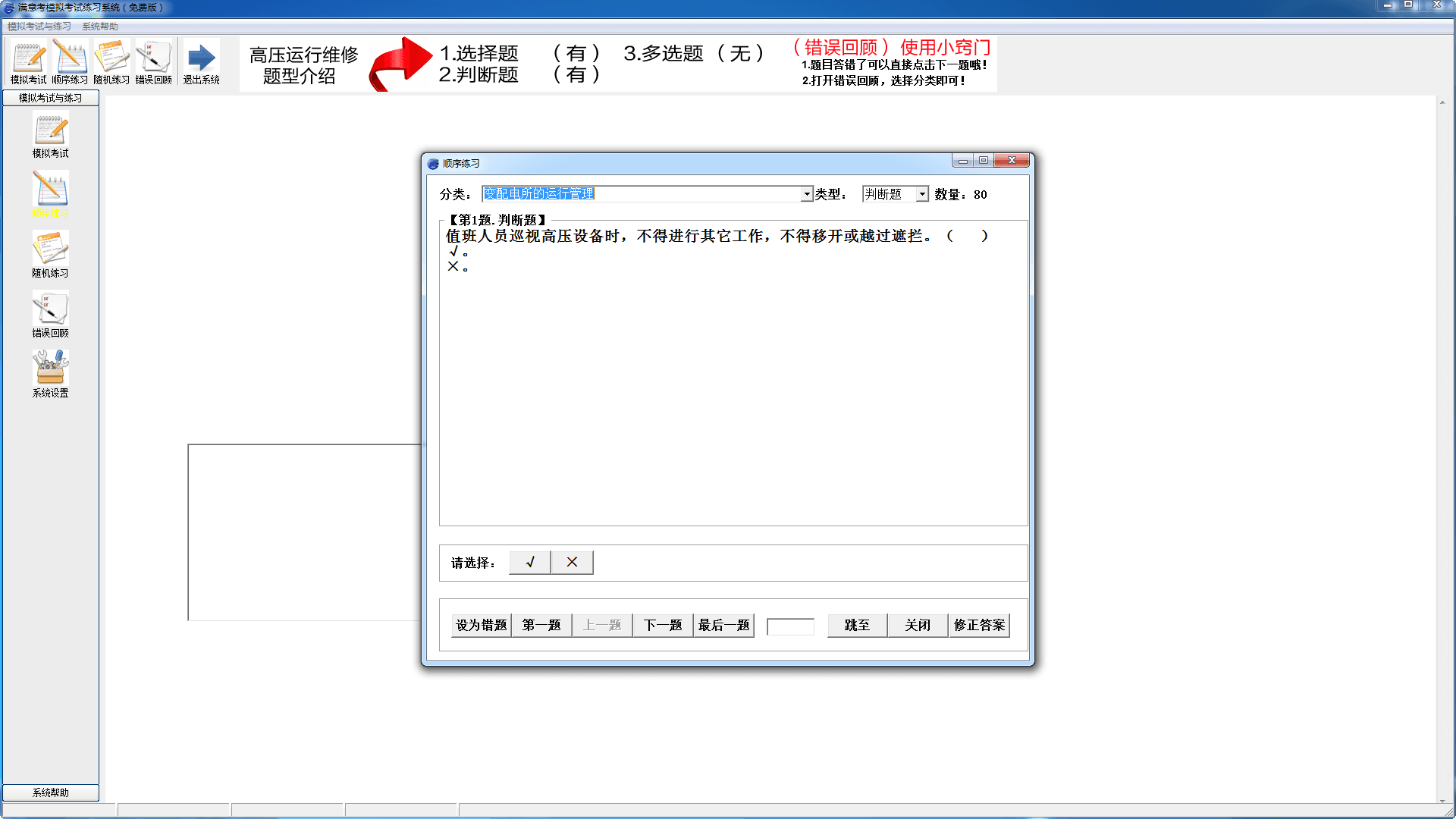 高压电工模拟考试是一个高压电工考试模拟系统,内置1280道习题,可以让用户在考试前有足够的练习题可以做,还有模拟考试试题,让您不再为担心考试而烦恼。欢迎点击下载!